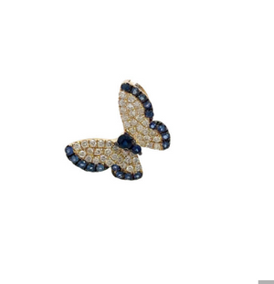 Yellow Gold Butterfly Round Micro Pave Diamond Pendant (14kyg Butterfly Pendant) (Sapphire And Diamond Butterfly Pendant (14k)) D:0.15 Sy:0.15 (10 X 12 Mm),Butterfly
