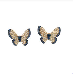 Yellow Gold Fashion Pave Sapphire Earring (14kyg Fashion Earring) (Sapphire And Diamond Butterfly Earrings (14k)) D:0.30 Sy:0.28 (10 X 12 Mm),Fashion
