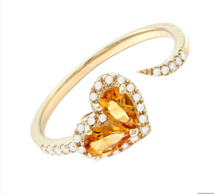 Yellow Gold Fashion Pear Prong Citrine Ring (14kyg Fashion Ring) (Heart Shape Fashion Ring With Citrine W/ Dia.) D:0.12 Ci:0.38 (7 X 9 Mm),Fashion