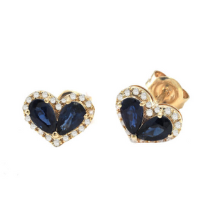 Yellow Gold Fashion Pear Prong Sapphire Earring (14kyg Fashion Earring) (Sapphire Heart Shape Earring W/ Diamonds (14k)) D:0.13 Sy:1.04 (9 X 12 Mm),Fashion