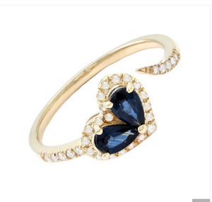 Yellow Gold Fashion Pear Prong Sapphire Ring (Heart Shape Fashion Ring With Sapphire & Dia.14k)